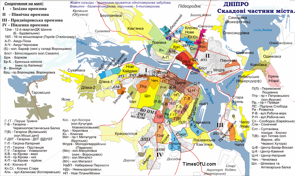 Карта районів Дніпро - Карта районов Днепра - Map of the districts of Dnipro |
