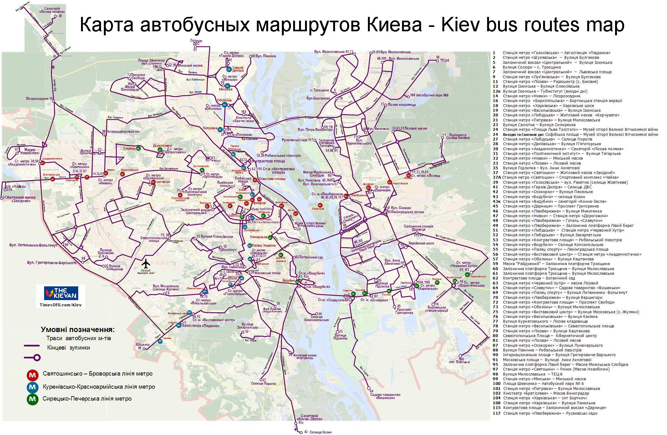 Карта автобусных маршрутов Киева - Kiev bus routes map |