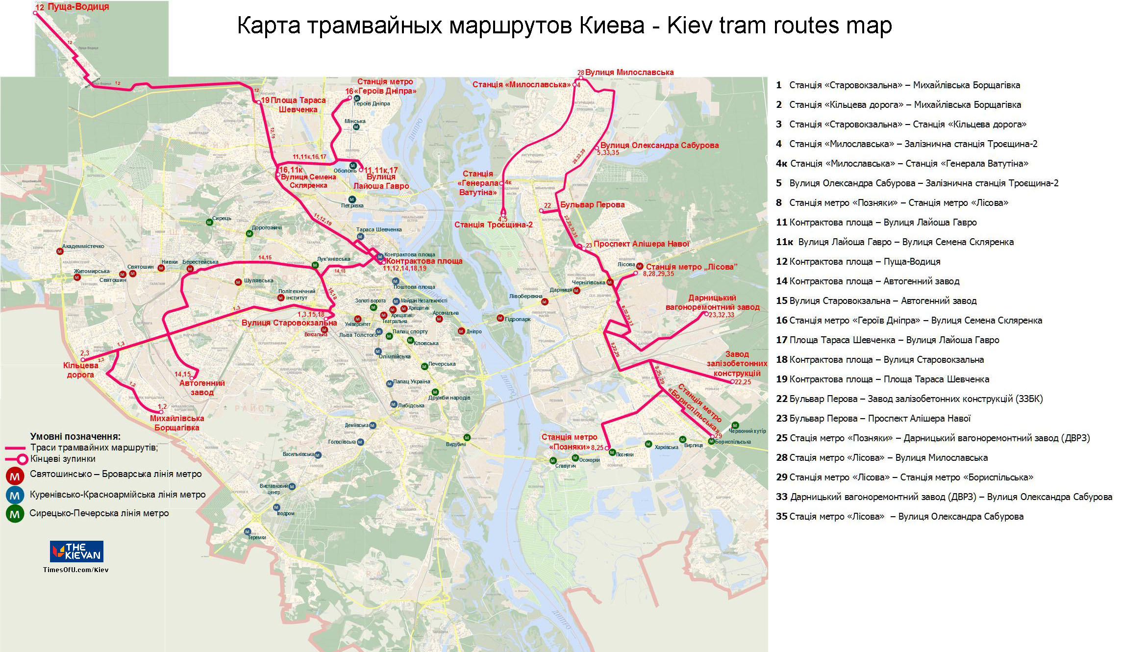 Карта трамвайных маршрутов Киева - Kiev tram routes map |