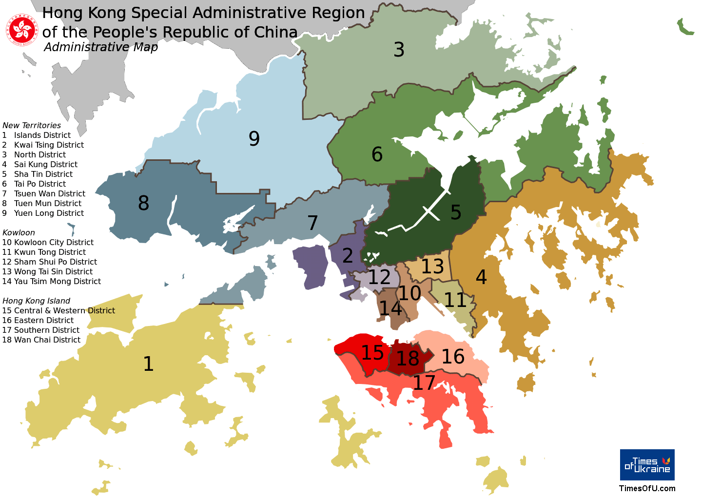 Карта округов Гонконга - Hong Kong districts map |