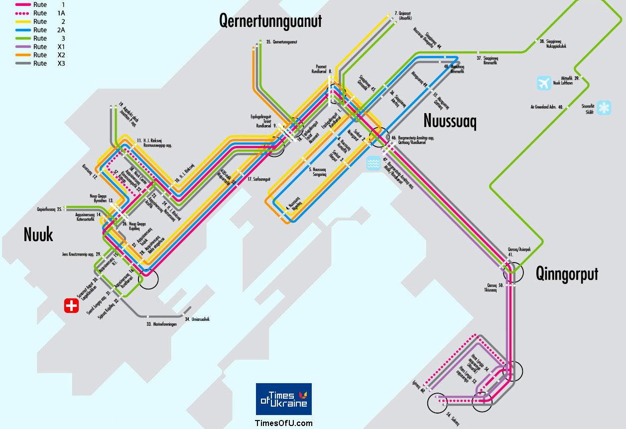 Карта автобусных маршрутов Нуука - Bus routes map of Nuuk |