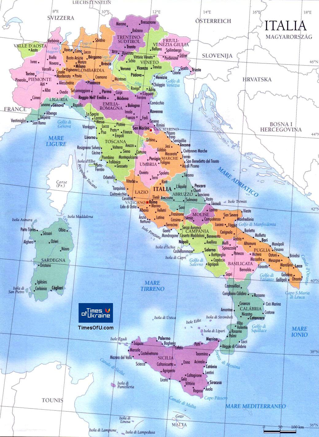 Карта областей Италии - Italy regions map  |