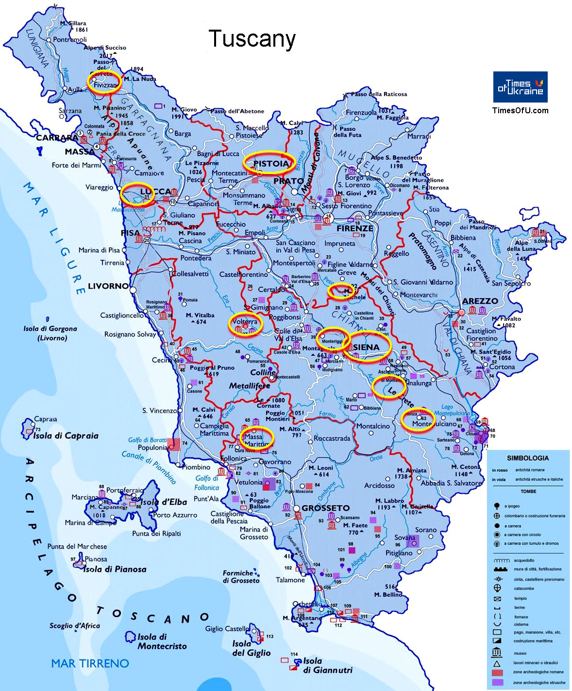 Карта Тосканы - Tuscany map  |