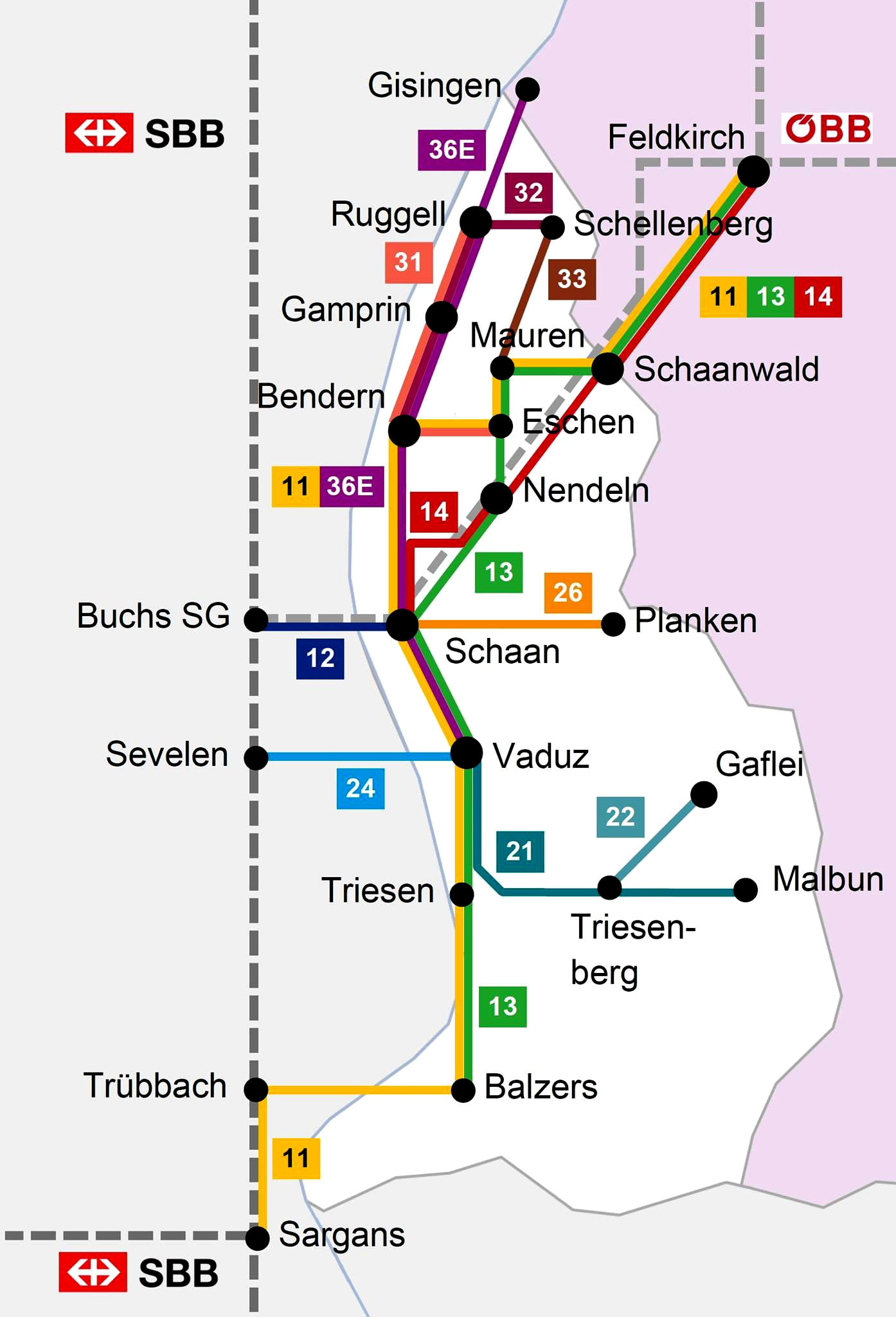 Карта железных дорог Лихтенштейна - Liechtenstein railway map |