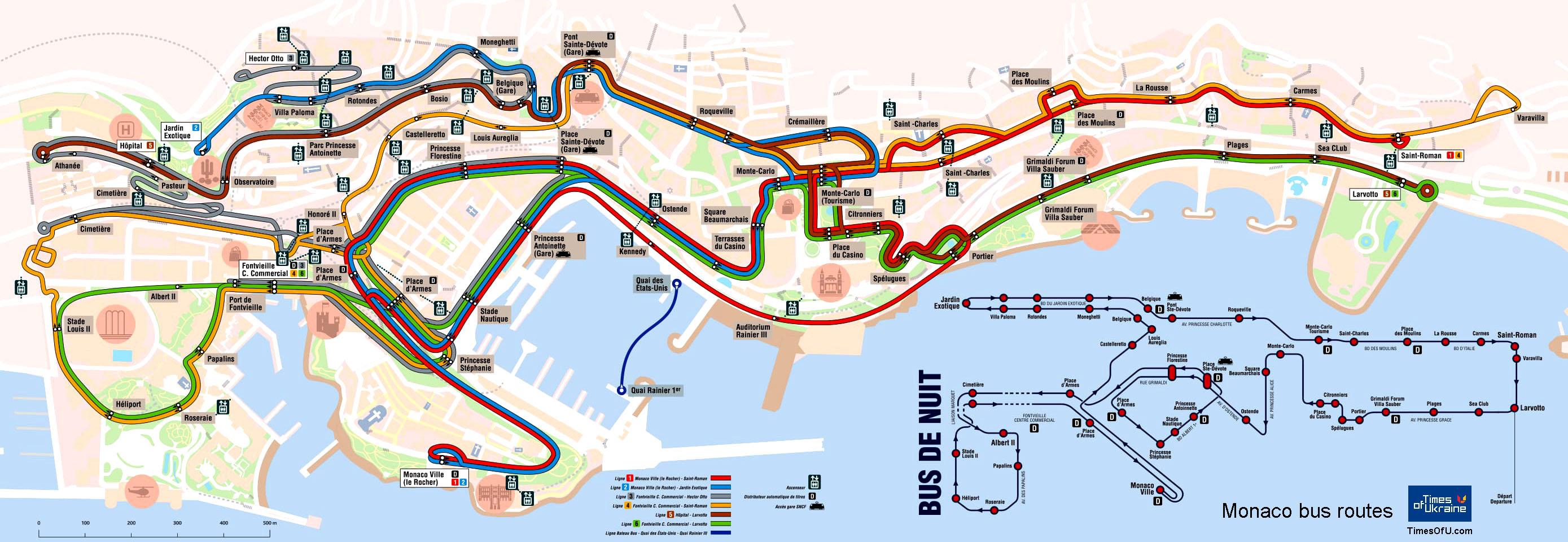 Карта автобусных маршрутов Монако - Monaco bus routes map |