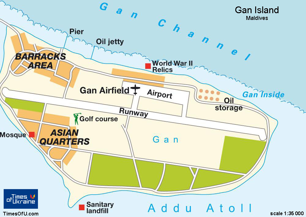 Карта острова Ган - Gan island map |