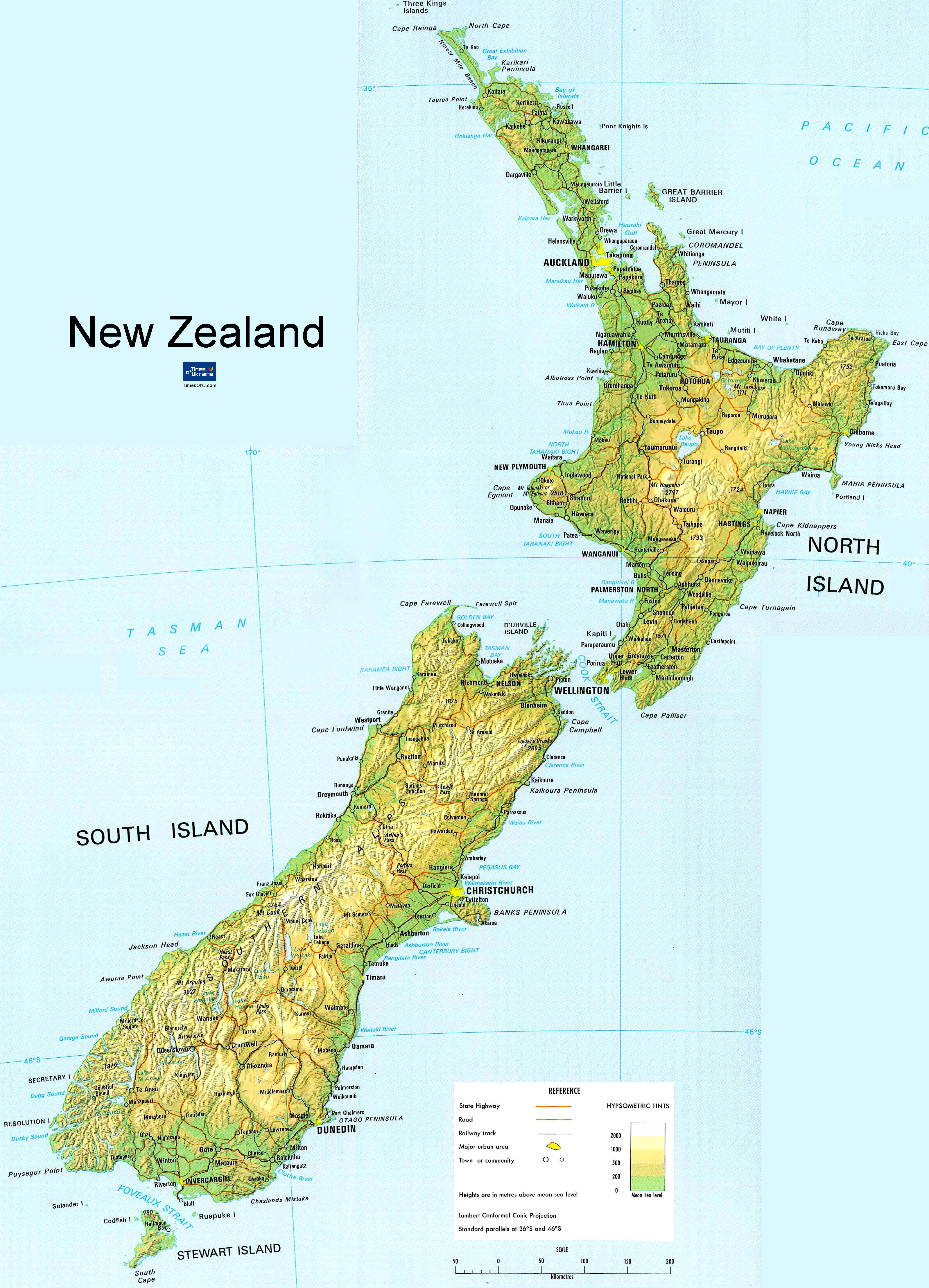 Карта Нової Зеландії - Карта Новой Зеландии - New Zealand map |
