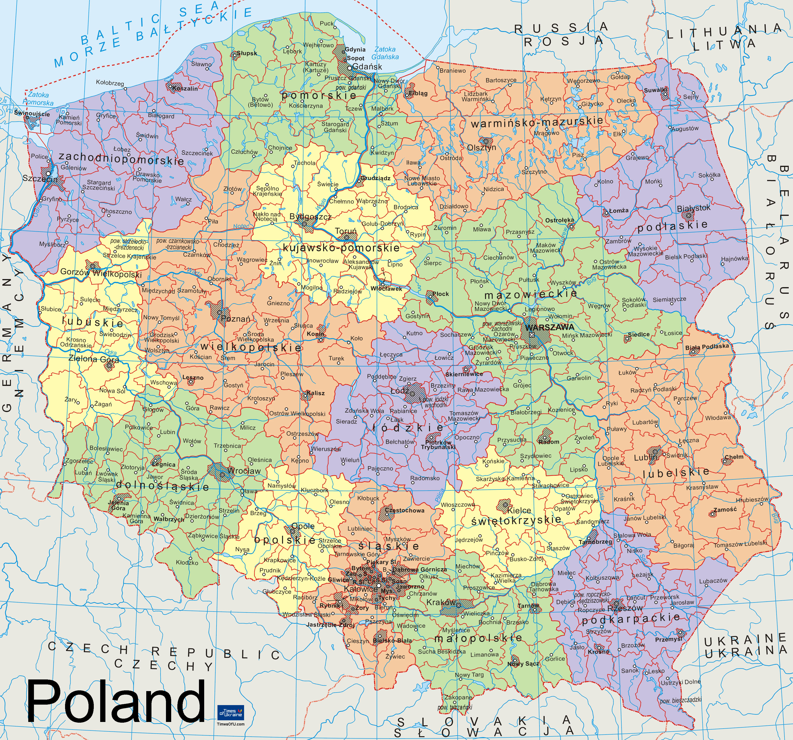 Карта Польши - Poland map  |