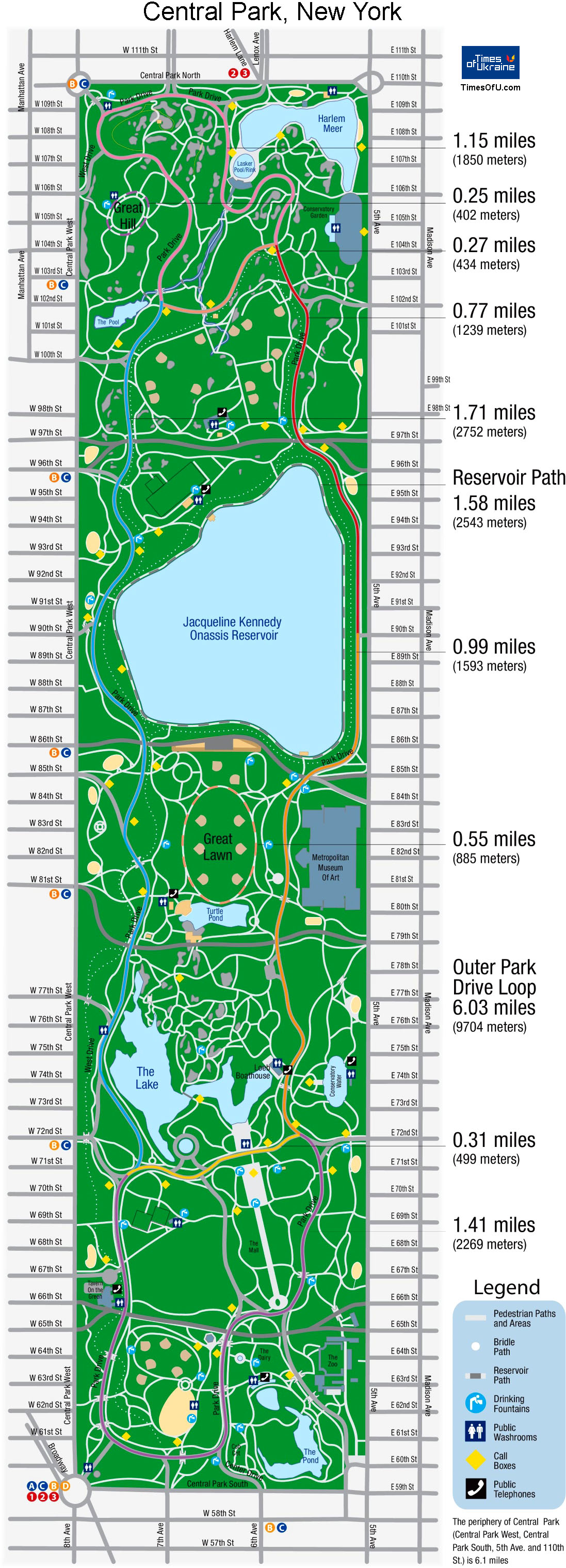 Карта Центрального Парка Нью-Йорка - Central Park, New York map |